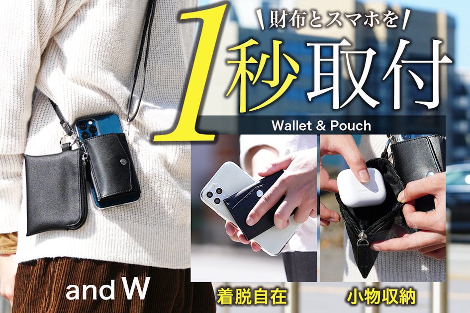 今回、スマホ・財布だけでなく、「ポーチ」まで後付する、スマホショルダーポーチ「and W」をリリースいたします。普段持ち歩く小物をポーチに収納することで、より身軽でミニマルな装いが可能となります。
