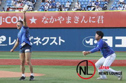 上茶谷大河投手との「飴取りゲーム」でスタジアムを盛り上げて、筋肉と空気を温めると、いよいよ「芸能界最速」の始球式にチャレンジ。筋肉をうならせて力強い投球ホームで「パワー」のこもった球をキャッチャーミットめがけてノーパウンドで投げ込んだ。確かな手ごたえを感じていたようだが、結果は71キロと、「芸能界最速」の半分ほどの球速にとどまる残念な結果に。