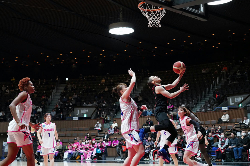 シャンソンの小池選手は、「『頭は冷静に、心は熱く』の言葉を意識してやっていた。最後の最後まであきらめず徹底してやろうとチームの中で話をしていた。出足の部分で緊張もあってシュートが入らなかったり、自分もターンオーバーをしてしまったり。でも『いずれシュートは入る』を信じてディフェンスから頑張ろうと全員が思ってプレーをしていた。この1試合、勝つ気でやった。ベスト4に行けたのは良かった。これに満足せずに自分たちのやるべきことを徹底して続けて勝ちに行きたい」と意欲を見せる。