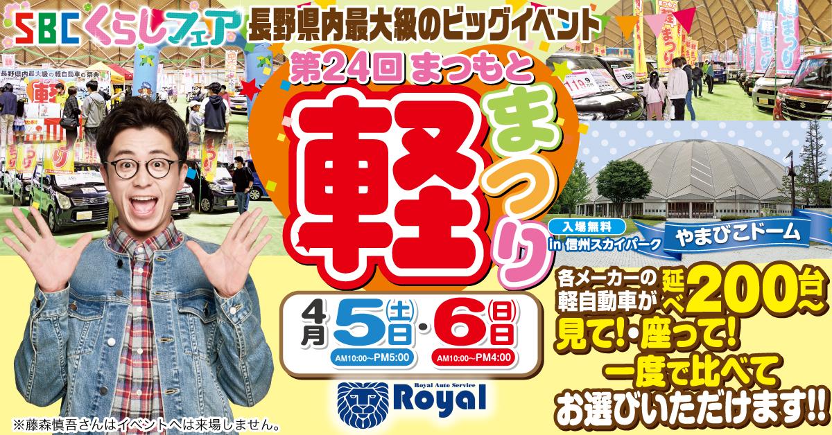 株式会社ロイヤルオートサービス(本社:長野県松本市、代表取締役:中田 忠章)は各メーカーの軽自動車が大集合する県内最大級の軽自動車の祭典「SBCくらしフェア 第23回まつもと軽まつり」を2024年4月13日(土)・14日(日)の2日間、信州スカイパークやまびこドームにて開催します。