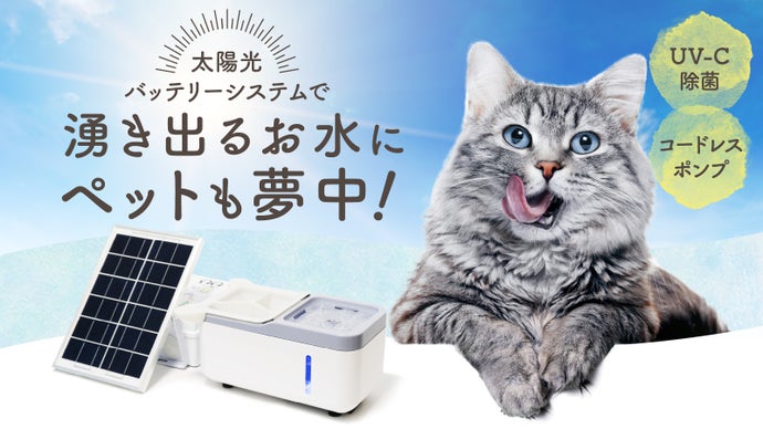 ネット物販業を行う合同会社アイムドリーム(所在地:福岡県福岡市東区、代表社員:松元 一郎)は、太陽光バッテリーシステムで商用電源不要&UV-C除菌内蔵のコードレスポンプの「ペット自動循環給水器」の先行予約販売を「Makuake」にて2024年5月17日(金)に開始いたしました。