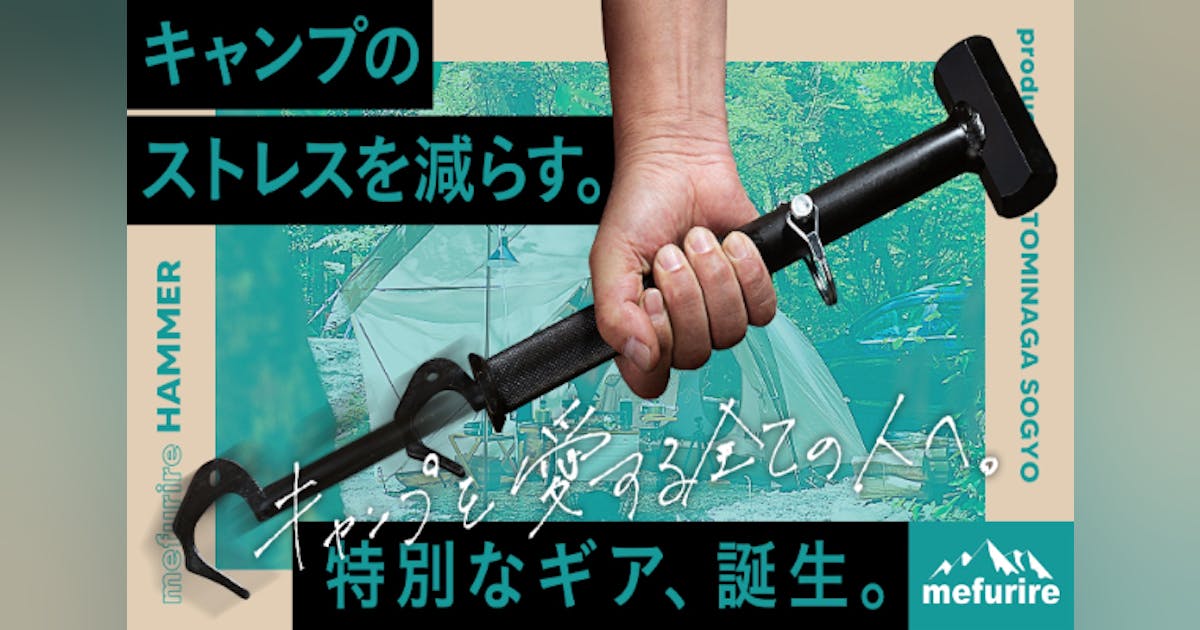 精密機械加工を行う有限会社冨永総業(所在地:愛媛県大洲市、取締役:冨永 敬二)は、ペグを簡単に、楽に抜くことができる「メフリレハンマー」をクラウドファンディングサイト「CAMPFIRE」にて2024年9月30日(月)まで販売しております。