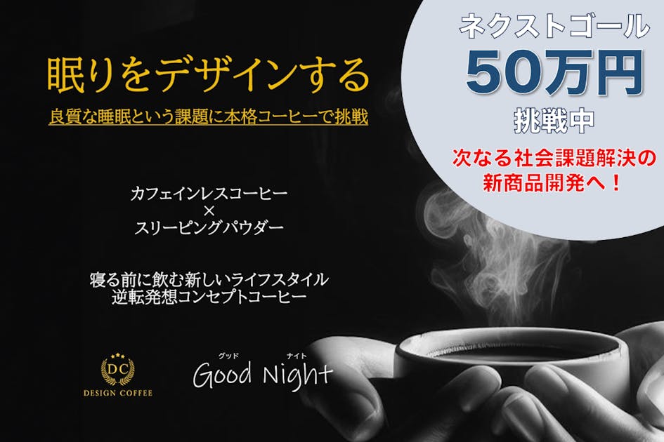 「眠りをデザインする」というキャッチフレーズのとおり、寝る前に飲めるコーヒーです。「今までは、寝る前に飲むことを避けていた」という方に向け、おいしくて良質な睡眠をサポートできる成分を含有したコーヒーをつくりました。私たちは「寝る前に飲むコーヒーという新しいライフスタイル」を提案します。