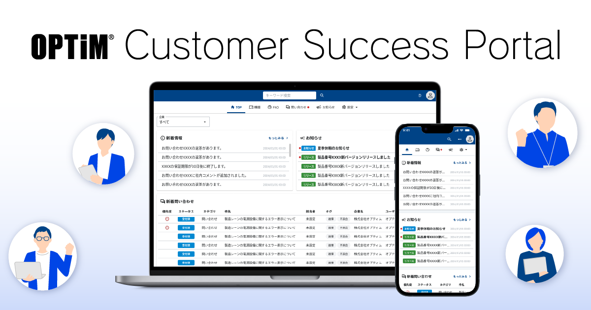 これらの機能により、「OPTiM Customer Success Portal」は顧客にとっても利便性の高いサポートを提供し、顧客満足度の向上に寄与します。