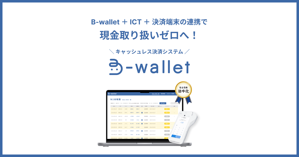 近年、保育施設におけるDX(デジタルトランスフォーメーション)が急速に進む中、保護者や施設運営者の利便性向上が求められており、その中でも、現金を使わないキャッシュレス決済が注目を集めています。株式会社MJ(本社:大阪府大阪市西区土佐堀、代表取締役社長:藤田 将)では、保育業界のキャッシュレス化を推進するためのソリューション「B-wallet」を発表いたします。