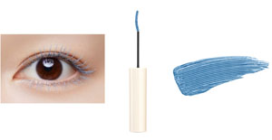 目もとに映えるブルーのまつ毛は、メイクアップの主役にも。