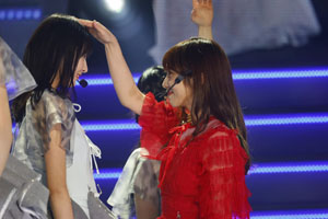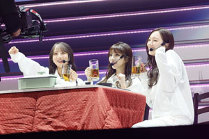 さらに、自身が初めて選抜メンバーとしてMV撮影をした思い出の曲『女は一人じゃ眠れない』では、同曲最後のオリジナルメンバーとしてソロパフォーマンスを披露し、8年半で遂げた成長ぶりを見事に提示してみせた。しかし、途中で「やっぱりひとりは寂しい……」と不安を口にすると、「与田ちゃん、来たよー!」と与田と同じ衣装を着用したブラックマヨネーズ小杉竜一がまさかのサプライズ登場。2人でこの曲を歌い踊ると、会場は温かな空気に包まれた。