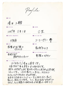 写真は、夏組の集合写真と同様に、学校内で制服を着て撮影されている。本人の手書きプロフィールによって、生年月日や長所・短所などパーソナルな部分や、好きな乃木坂46の曲・MVといった情報、さらにファンの方へのメッセージなどが公開となった。