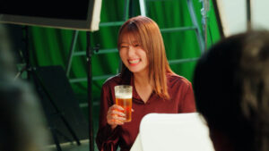 新CMは、暗闇の中から登場する真⽥に光が差し、⼒強い表情で正⾯を⾒つめるシーンから始まる。そこから、吉川、⽔上、⼆階堂へと順に画⾯が切り替わり、『アサヒ ザ・ビタリスト』を味わう4⼈の表情が映し出されていく。その後、「ザ・ビタリスト。それは“爽快な苦味がもたらす、つきぬけるうまさ。”」というナレーションとともに、真⽥と⼆階堂が再びフォーカスされ、ビールを味わったあとの⾄福の表情が印象的に描かれる。