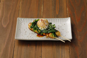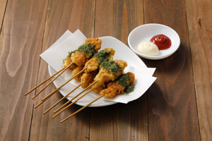 大倉をイメージした「グリーン」を取り入れ、色鮮やかに盛り付けた。ささみのチキンナゲット串8本に、のり塩をトッピングした『串ナゲットグリーン』。むね串のタレ焼きにたっぷりのニラと半熟卵をトッピングした『ニラ玉グリーン』。どちらも食べるのが大好きな大倉に合わせてボリューム満点!各100万食ずつ、合計200万食限定の販売。