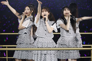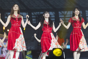 続く『走れ!Bicycle』ではメンバーがフロートやトロッコに乗車し、大規模会場を回遊。『君に叱られた』『チートデイ』『ジコチューで行こう!』といった人気のシングル曲を交えながら、ファンと交流を図っていく。そして、最新シングル『ネーブルオレンジ』ではダブルセンターの井上和&中西が美しい歌声でオーディエンスを魅力した。