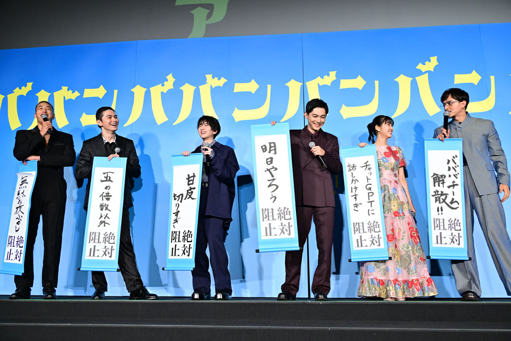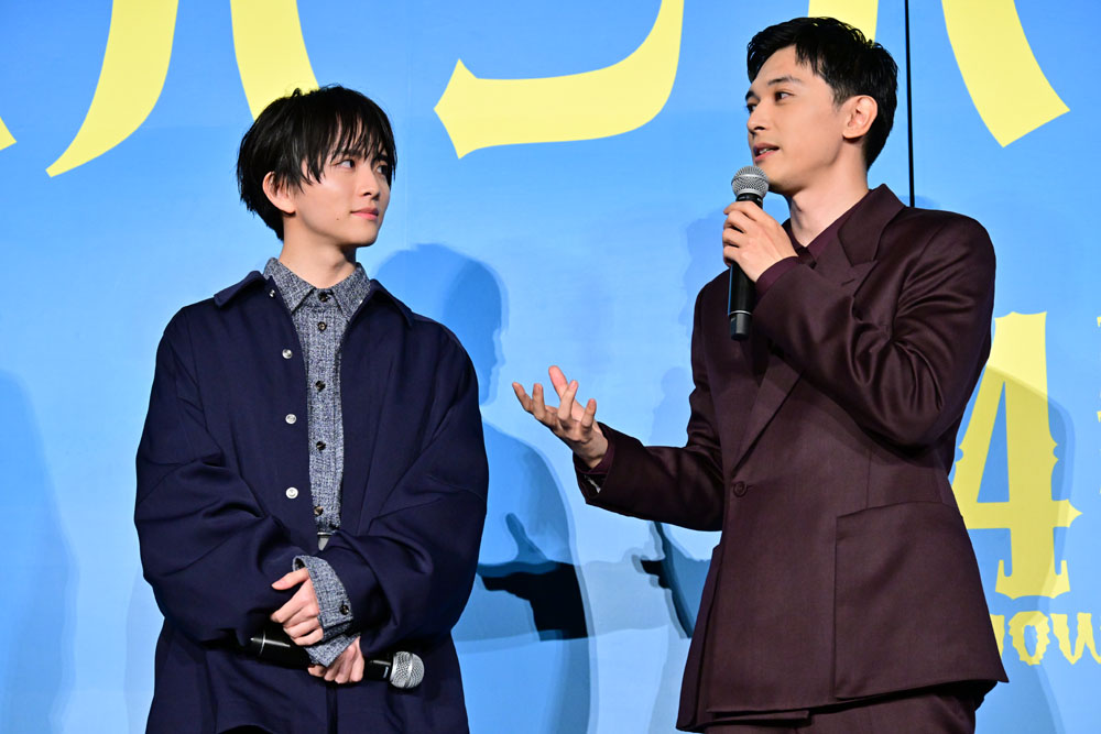 俳優・吉沢亮が主演の映画『ババンババンバンバンパイア』(監督:浜崎慎治/配給:松竹)の完成披露試写会が17日都内の映画館で行われ、板垣李光人、原菜乃華、関口メンディー、満島真之介、眞栄田郷敦、浜崎慎治監督らとともに登壇した。