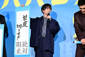 満員御礼で迎えたこの日、450歳のバンパイア・森蘭丸を演じた吉沢亮は“至高の美味”「18歳童貞の血」の危機に直面し、おかしな方向に暴走してしまうクセの強いキャラクターを熱演している。コメディ演技をする上ではギャップを意識したといい「観ているお客さんにとっては笑えるけど、やっている本人たちは至って真剣。真面目に向き合えば向き合う程に面白くなるのを意識して、演じている僕らが変に楽しまないようにしていました」と述べた。