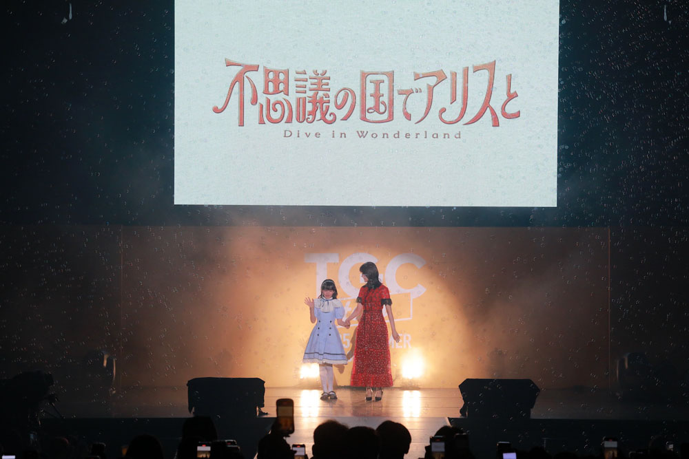 1865年にルイス・キャロルが生み出し、今もなお世界中で読み継がれ、数多く映像化されてきた名作『不思議の国のアリス』が、日本で初の劇場アニメ化。劇場アニメ『不思議の国でアリスと -Dive in Wonderland-』のスペシャルステージに声を担当した主人公・安曇野りせ役の原菜乃華とアリス役のマイカ ピュが登壇した。幻想的なシャボン玉の演出とともに、原作の世界観をなぞるような可愛らしいステージで、会場に集まったティーン世代の観客を魅了した。8月29日より全国公開
