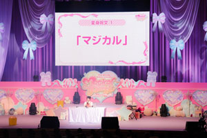 「OGC魔法学園」に続いては、待望のライブコーナー。幕間映像「唯ちゃんが30の質問に答えます」を挟み、先に獲得した変身呪文を観客が叫ぶことで、魔法少女をイメージしたライブ衣装にチェンジした小倉がステージに。「Honey♥Come!!」、「すうぃ〜と♡ぱーてぃー」を立て続けに披露した後は、2人のダンサーも加わって、イベント前日に配信リリースされたばかりの「Magic♡Happy」、そして「瞳の国のアリス-Dance Music Edition-」、さらには「Magical♡Party ミニミニメドレー」として「オトメロディー」と「DANZEN! ふたりはプリキュア」をカバー。会場の熱気を最高潮に盛り上げ、「So☆Lucky」でライブコーナーを締めくくった。