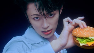 「チーチーダブチ」と「チーチーてりやき」を食べるシーンの撮影では、それまでやや張り詰めていた空気が解け、笑顔を覗かせていた加藤。右手の人差し指と小指を立ててバーガーを持つ手の形が「キツネのハンドサインに似てるね」とおどけて見せ、周囲の笑いを誘うひと幕も。撮影本番ではロックのイメージでガブリと力強くかじりついた。