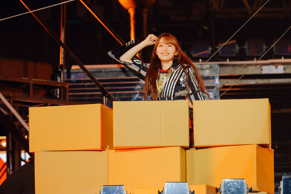 二期生、三期生の期別曲ブロックを終えると、いよいよ4月に新加入の四期生が登場。ムービングステージに乗った9人が姿を現すと、アリーナ後方からゆっくりとメインステージへと移動していく。彼女たちの参入を祝福するような演出で会場が温かな空気で包まれると、「死んだふり」を全身全霊の歌とダンスで表現。センターの山田桃実を中心に最後には満面の笑みを浮かべるなど、堂々とした佇まいで四期生の存在をアピールした。