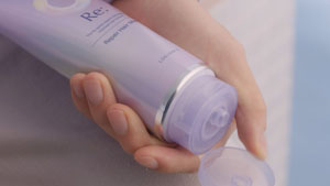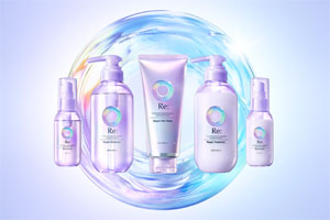 JINの「ルシードエル」という囁きから始まり、Re:(アールイー)シリーズのブランドカラーである、紫色の衣装を身にまとったJINが、明るい日差しの差すバスルームに登場。。JINがRe:(アールイー)シリーズのヘアマスクのキャップを開けると、Re:(アールイー)シリーズの再整美容(※1)を象徴する「再整リング」が出現し、JINに接近。再整リングが回転する中で、JINの美しい髪がなびく様子が様々な角度から映し出される。