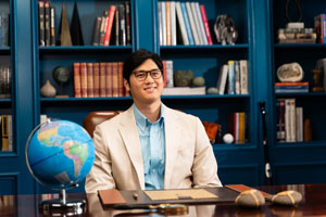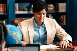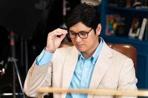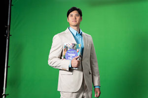 水色のシャツにクリーム色のジャケットを羽織って登場した大谷選手。ECCジュニア新テレビCM「教えて!大谷さん」篇では、メディア初公開となるメガネ姿を披露し、知性と品格を兼ね備えた英会話講師を見事に演じきった。撮影中は、監督の指示を真摯に受け止め、的確に対応するだけでなく、時には大谷選手自ら監督のもとへ歩み寄り、演技について相談される場面も。普段の試合で見せるトップアスリートの表情とはまた一味違う表現者としてのこだわりが、随所に光った貴重なシーンの連続となった。また、本物のカメラレンズに直筆のサインを書き入れる場面では、当初は戸惑いを見せていたものの、いざ合図がかかると表情が一変。爽やかな笑顔で軽やか、かつ堂々と書き上げ、見事に一発OKを勝ち取る勝負強さを発揮した。その完璧な立ち振る舞いに、監督からも思わず「さすが一流!」と感嘆の声が漏れ、スタジオ全体がそのスター性に圧倒されるような特別な空気感に包まれるなど、大谷選手のプロフェッショナルな姿勢が深く印象に残る撮影現場となった。