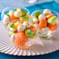 モッツァレラのミルク感とサーモン、アボカドの旨みが重なる、見た目も味わいも華やかなひと品です。