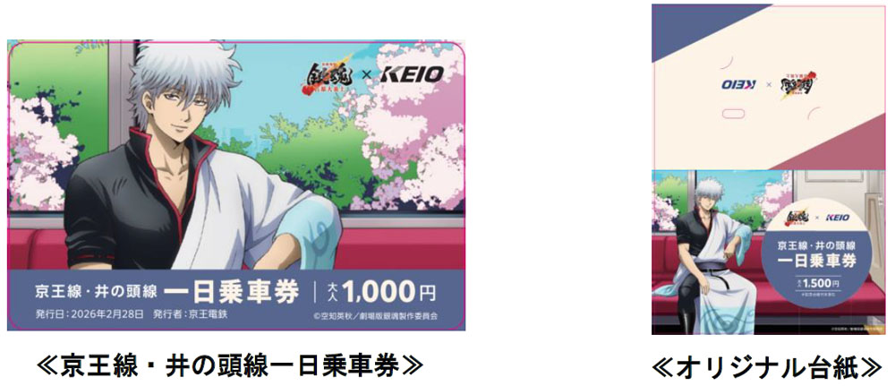 この企画では、2月28日から京王線新宿駅や井の頭線渋谷駅など全5駅に、キャラクターパネルを設置するほか、オリジナル台紙と京王線・井の頭線一日乗車券をセットにした「記念乗車券」を販売。また、3月2日から、井の頭線車両にオリジナルヘッドマーク・オリジナルラッピングを施した「銀魂トレイン」を運行し、車内では坂田銀時(声優:杉田智和氏)による放送を実施する。