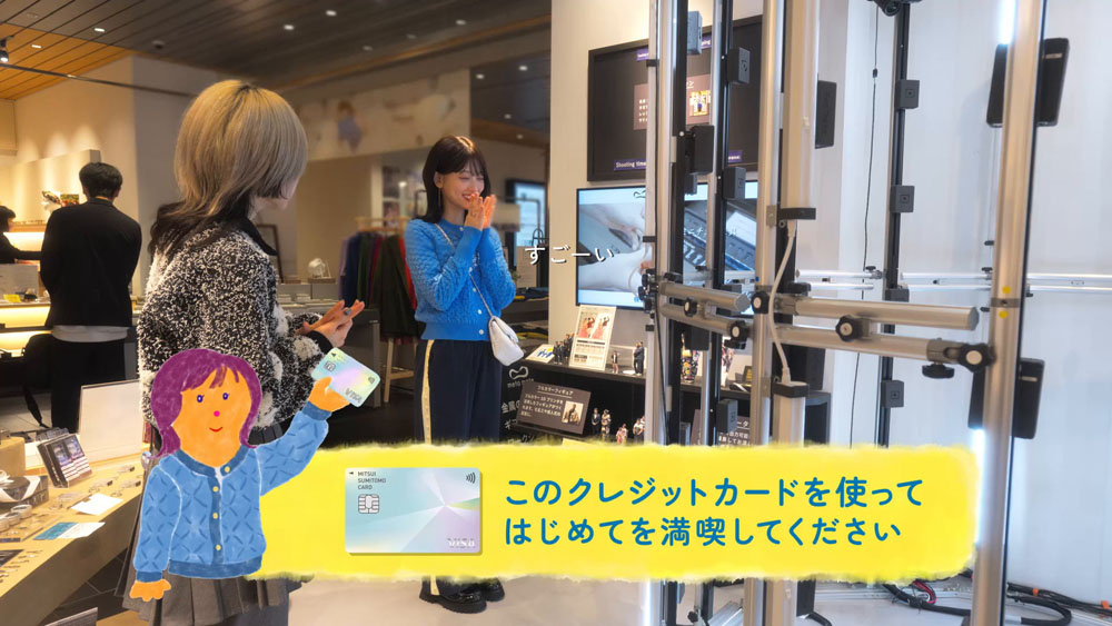 また、各シーンにはナンバーレス仕様のクレジットカード「三井住友カード(NL)」の利用シーンもさりげなく描かれ、日常に溶け込むキャッシュレス体験を表現してる。
