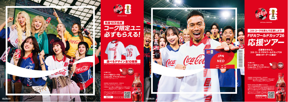 さらに、「コカ・コーラ FIFA ワールドカップ26」ジャパンアンバサダーに就任したHIP HOP/R&Bアーティストグループ XGが「コーク限定ユニ」のファッションで登場し、キャンペーンを盛り上げるWEBムービーを公開。また、「FIFA ワールドカップ26 応援ツアー」に応募する参加者に向けた長友佑都選手の熱いメッセージムービーも公開する。