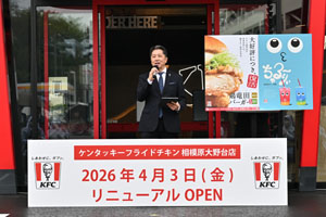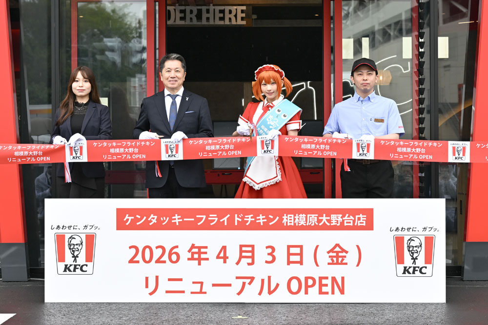 日本ケンタッキー・フライド・チキン株式会社は、4月2日に神奈川県相模原市「KFC 次世代モデル店舗 相模原大野台店 オープニングセレモニー&新商品『ゼリードリンク』 発表会」を開催した。