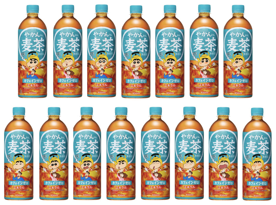 また、限定コラボレーションとなる“やかんをかぶったしんちゃん”が目を引く「家族の名言付き!クレヨンしんちゃんボトル」(以下、「クレヨンしんちゃんボトル」)全15種を同日より発売。(※1)