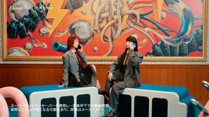 「ピクセる?」の合言葉と軽やかな首振りダンスが印象的な映像は、複雑な日常からの解放を予感させる。親友同士の楽しそうな会話が、充電が出来るカフェ探しや海外旅行前の準備から解放させてくれる「最⾧120 時間バッテリー」や「海外でそのまま利用」という魅力をわかりやすく表現する。