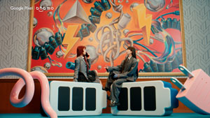 電源のしがらみを模したセットの前で会話するアイナ・ジ・エンドとCocomiが、CM楽曲にあわせてスマホの充電や海外旅行前の”もやもや感”から解放され、シンプルな青空の世界へ切り替わる晴れやかな様子が見どころ。二人の息の合った自然な掛け合いを通じて、Google Pixel 10a ×ahamo のシンプルな魅力を伝える。