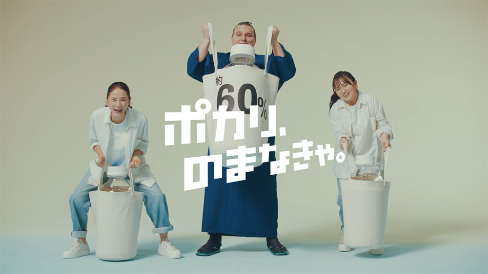 吉田羊、鈴木梨央が大相撲の大関・安青錦関から、相撲の基本稽古である「四股」や「すり足」といった力士ならではのシーンを通して、汗をかくカラダに必要な水分と電解質補給の大切さを伝える。CM は「四股をふむ」篇、「すり足」篇、「ヒトの60%」篇の3 篇で構成され、それぞれ異なる切り口から「ポカリ、のまなきゃ。」というメッセージを届ける。ユーモアたっぷりで笑いが絶えない3 人の対談企画にも注目。