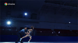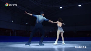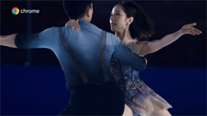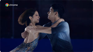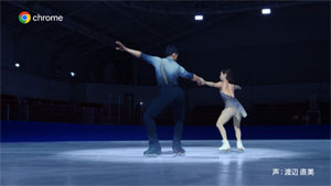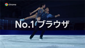 美しいペアスピンから始まり、高速で回転するツイストリフトで Google Chrome のブラウジングの「スピード」を表現。続くリフトで、ユーザーを守る強固なセキュリティによる「安心感」を表しています。最後は三浦さんに”くろーむたん”を持ちながら、二人で力強く「りくりゅうは、Google Chrome を選びました」と宣言しています。