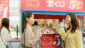宝くじ売り場での何気ない会話を通じて、「当たったらどうしよう」と想像する楽しさを描いた篇です。売り場でのお祈りや会話をきっかけに、宝くじが日常にちょっとしたワクワクをもたらす存在であることを表現。
