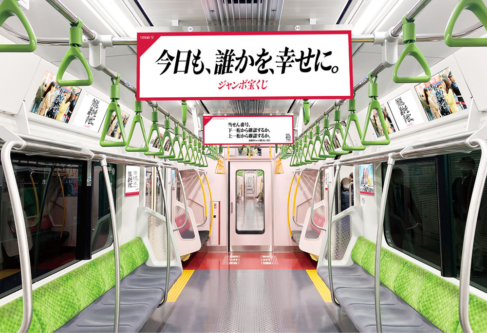 令和8年4月19日(日)より電車内にてトレインジャック広告を掲出します。電車内の中づり広告など複数の媒体を活用し、街全体を使った展開を実施。通行する多くの人の目に触れる形で、「日常の小さな幸せ」というメッセージを届けます。本広告では、一般の方から募集した「宝くじにまつわる幸せエピソード」を掲出。「好きな人と一緒に買いに行ける、それだけで幸せ」など、日常の中にあるささやかな喜びを街の中に映し出し、多くの人に共感を広げていきます。