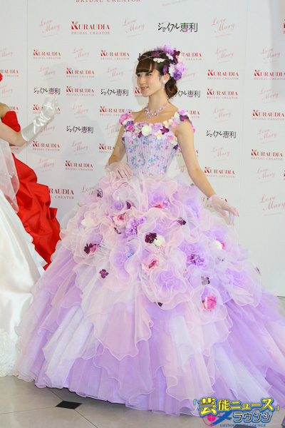 麻里子様夢が叶ったウエディングドレス!“上から”こじはる結婚早そう お花をふんだんにあしらったパープルのカラードレス X Facebook Pocket LINE Pinterest コピー 2012.01.25