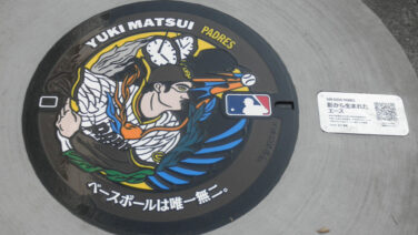 メジャーリーグベースボール(MLB)『サンディエゴ・パドレス』に所属する松井祐樹投手のオリジナルマンホールカバーが6月18日に川崎市麻生区栗木の『桐光学園中学校・高等学校』前に設置された。