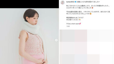 ENTERTAINMENT トリンドル玲奈、自身のインスタグラムで第一子の妊娠を発表!「今は出産を目前に控え、ドキドキしています」
