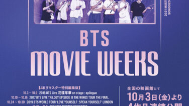 韓国の7人組アイドルグループ『BTS』がこれまでに開催した 4 つのライブを 4 作品連続で劇場公開する企画「BTS MOVIE WEEKS」の第 1 弾の入場者特典が解禁となった。10月3日より上映開始。